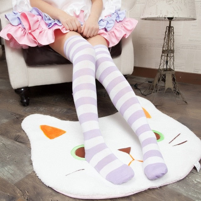 1Pair New Women Girls Over Knee Long Stripe Printed Thigh High Striped Patterned Socks 7 Colors Sweet Cute Warm Wholesale Lot